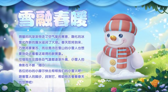 春风微暖,寒意渐消,融化的冰雪化作新的露水滋润了大地。总是待在雪山的小雪人想看看春天的样子,可它的身影随着气温升高越来越小……