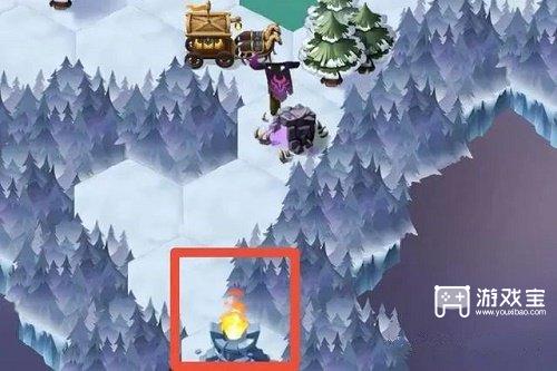 1、第7天的探索地图上,会出现上图框住的火台,拿到火并触摸拦路的冰柱,会打开原来封死的路口,由于整个地图的机关没什么难度,所以不再赘述。