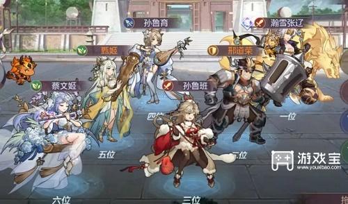 武将:5星邢道荣+1火瀚雪张辽+5星孙鲁班+1星孙鲁育+5星甄姬+1火蔡文姬
