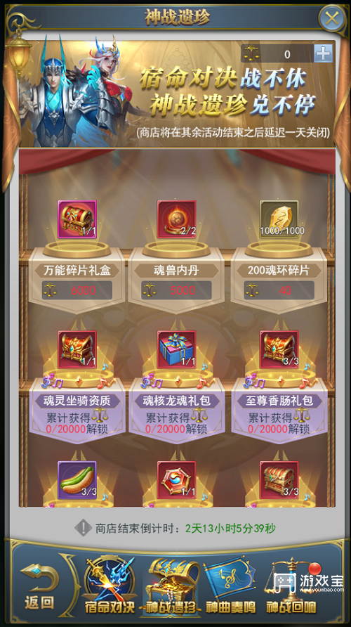 为了方便魂师们兑换奖励,神战遗珍将会延迟一天关闭,放心进行宿命对决吧!