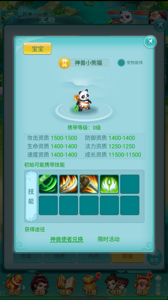神兽的培养尤为特殊,没有洗练这个过程,因为神兽不存在变异;也没有合成这个步骤,因为神兽的资质一开始就是满的。神兽刚入手的时候是小神兽,你需要花费50个神兽魂来进阶到大神兽。