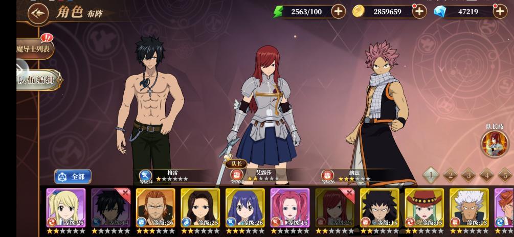 把露西换成艾露莎即可,纳兹和格雷是这套平民队伍中的输出和控制,各有特色。艾露莎在游戏中她的魔法剑技能附带不动、霸体效果,这套体系中,承担坦克位,铁三角阵容。