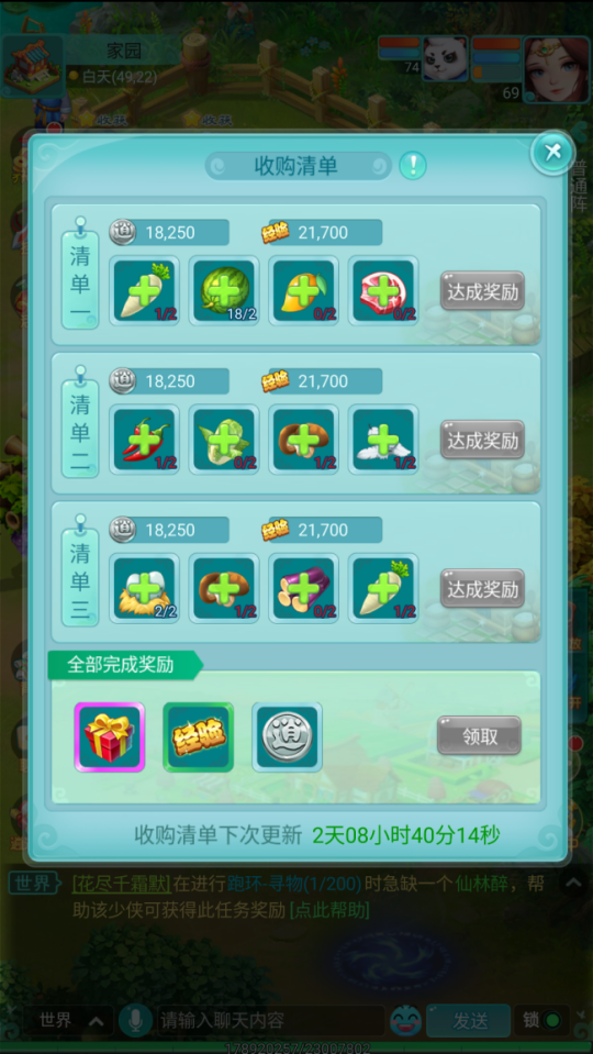 如果你向收购商提供他需要的商品,他会给你很多银币和经验,收入远高于直接销售。因此,建议少侠在种植或繁殖之前查看清单,然后有针对性地种植。