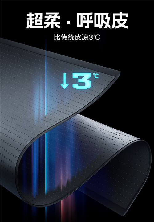 传统电竞椅的表皮是PU皮质,傲风考虑到选手每天十多个小时的久坐训练,在新品上配置了超柔呼吸皮,独特的打孔设计,比传统皮质凉爽3°,改善了传统电竞椅闷热出汗的问题。