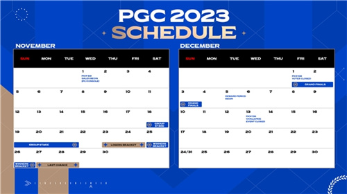 备受瞩目的总决赛将于12月1日至3日举行,为期3天。共有16支战队将进行18场比赛,表现最出色 的队伍将加冕PGC2023全球总决赛的冠军。