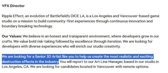最新战地系列的发展表明,该系列将在下一代游戏中带来更多的破坏效果。消息来源于《战地》系列的辅助开发商《涟漪效应》(前身为DICE LA)的广告。他们正在寻找一位特效导演(VFX导演)来创造“业内最真实、最令人兴奋的破坏性效果”,这表明该公司正在着力改善游戏的破坏性动画效果。