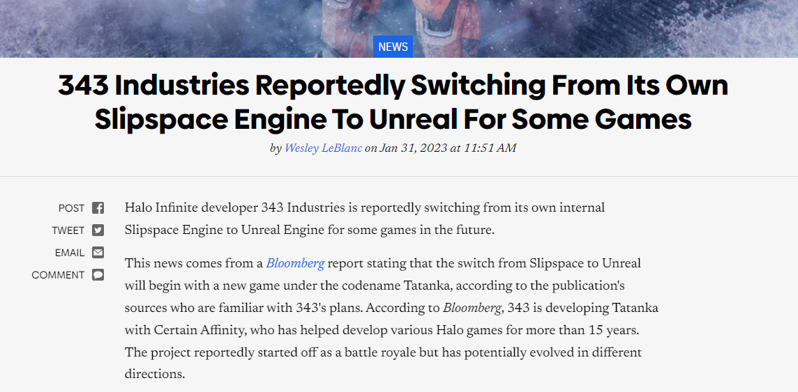首席关卡设计师,首席游戏系统设计师都提到了虚幻引擎,看起来下一代《光环》游戏将放弃自家的Slipspace引擎,改用了Epic的虚幻5引擎。