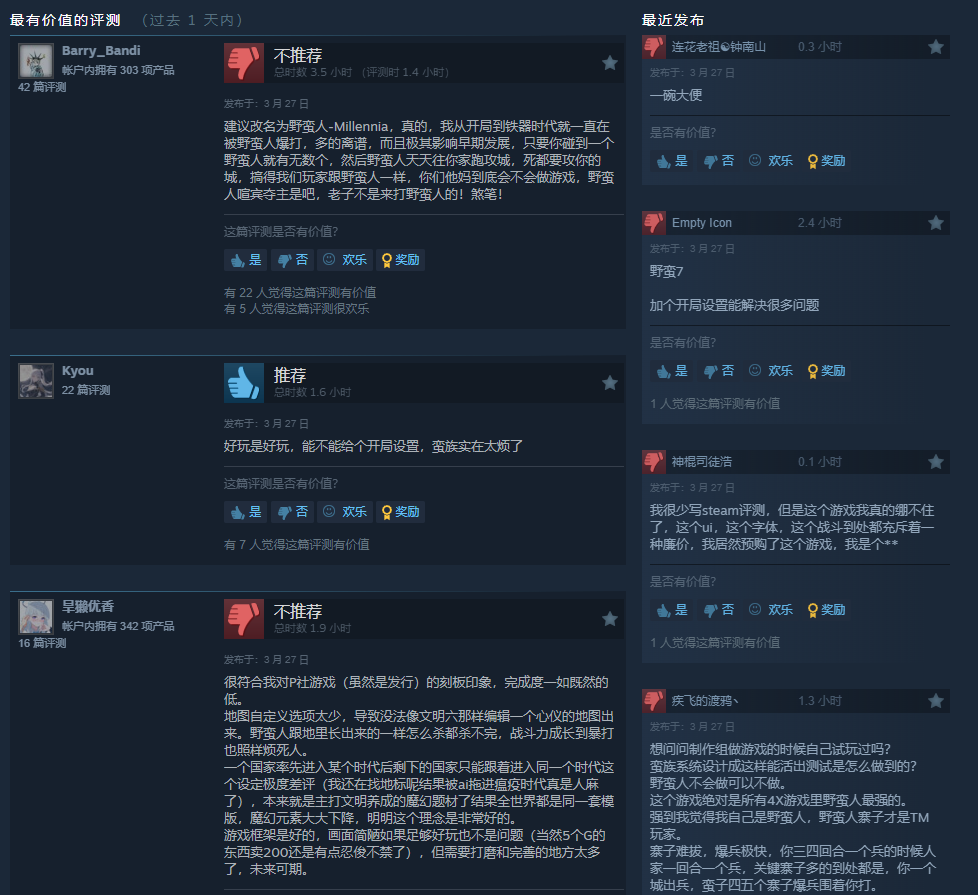 其中游戏里的野蛮人机制是玩家最不能接受的地方,不少玩家都表示攻击欲望高且战斗力过强的野蛮人,使得游戏的体验极其糟糕。