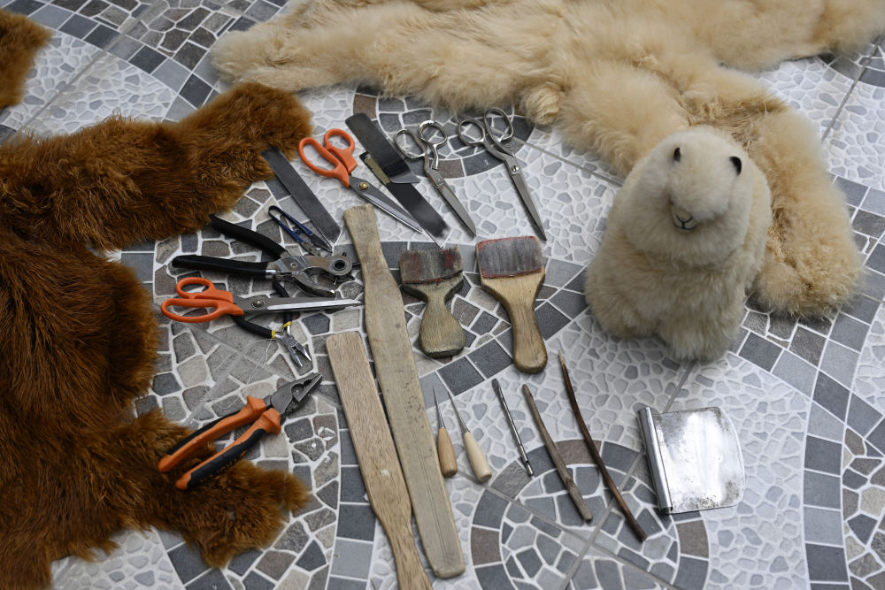 这是6月20日在秘鲁阿雷基帕拍摄的羊驼皮毛和手工制作羊驼玩偶所使用的工具。新华社记者李木子摄