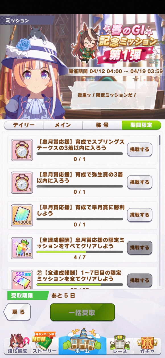 弥生,时间是第二年3月上半月,G2,池,中距离赛,要求成绩前三名。