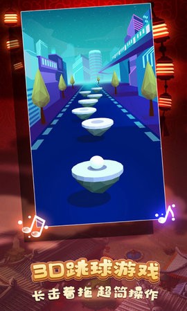 控制球跳,会有特效,在跳的过程中收集途中的笔记,争取拿到最高分;