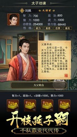 皇帝养成计是一个模拟训练之旅。你将扮演皇帝,领导你的王朝。你可以选择你自己的文官和武将来帮助你治理国家,扩张领土。来试一试。