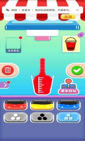简单的游戏风格,奶茶杯很好看。在你熟悉操作后,玩家可以自己调配新的颜色,制作新颖的奶茶;