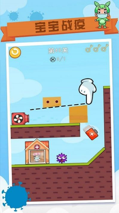营救宝宝是一款有趣的紧张营救游戏。游戏中的一个婴儿被困在一个房间里。你的任务是救他。在病毒到家之前,你得把医药箱送到宝宝身边。这是一个与病毒赛跑的游戏。