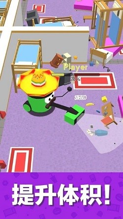 吸尘大作战是一个非常有趣和放松的游戏。在游戏中,玩家需要操作一台可爱的吸尘器,将房间内的所有物品清理并吸走,并不断增大体积以获得更多的金币。通过奖励,你可以升级吸收更大物体的能力。