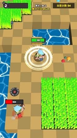 可爱的卡通风格,玩家可以在俯视角度进行物理冲击,找到合适的角度将敌人击入水中,竖版游戏,简单的指尖操作体验,滑动屏幕移动,一秒钟的手动操作,培养坐骑和驯服坐骑。