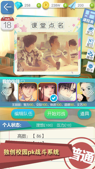 3.精彩连贯的剧情,让你在充分体验游戏的同时,感受校园世界的爱恨情仇,跌宕起伏。