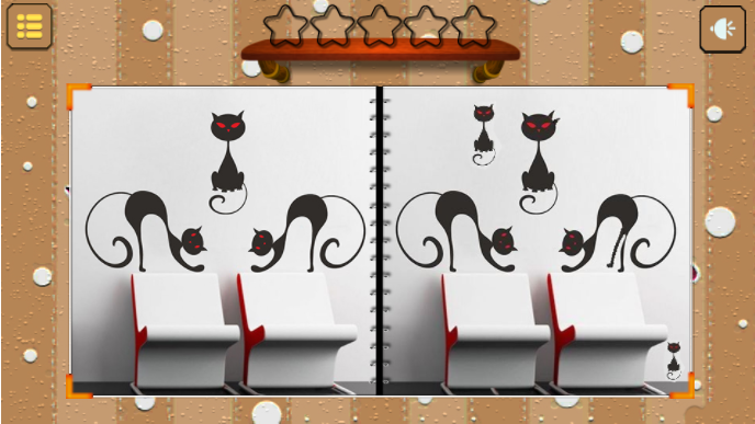 猫咪房找不同是一个吹毛求疵、休闲和智慧的游戏。玩家在游戏中会有不同的关卡等着你去选择。每一关都有卡通风格的猫室,玩家会在这些可爱的猫室里玩找茬游戏。游戏是有时间限制的,需要注意时间。