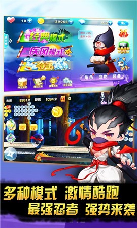 来到有超Q萌圣兽、逆天神器的上忍必须死,踏上忍者超我之路;在这里,你可以忍受各种诡计,突破陷阱,飞向地面,召唤神灵。多种模式,激情奔跑,最强忍者,强攻击。