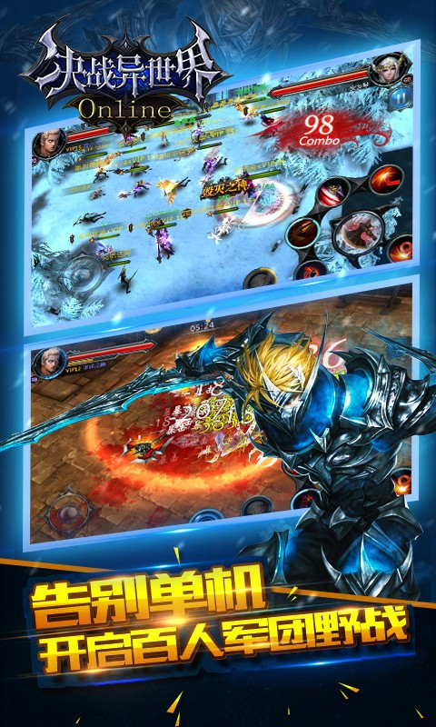 决战异世界是一款魔幻冒险手机游戏,拥有流畅的连续招募技能。万人同屏竞技,野外实时PK的战场,扣人心弦。可以享受各种竞技游戏的乐趣,还有各种福利礼包等你来领取。