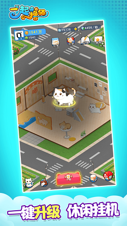 宠物养成类模拟治疗类游戏的操作,简单的游戏操作和养成体验。一键升级也可以上勾。每只猫都能带来不同的惊喜体验,获得丰厚的收益,并与自己的猫互动,共同成长。