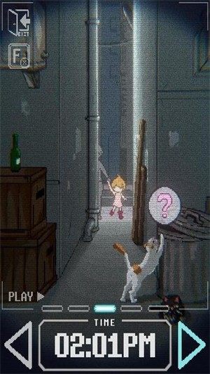 1、首先,视角是一个小巷子里的深处,鼠标左右拖拉镜头,点下面可以跳转时间,标有new的就是有新事件