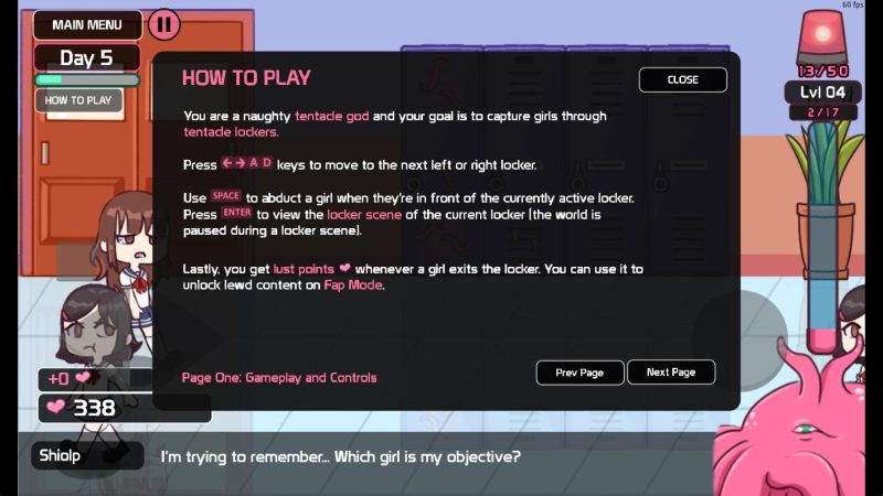 游戏的目标之一是收集校园中各种性格、外貌各异的可爱少女。玩家需要通过观察少女们的行动轨迹和表情,在她们靠近储物柜时,利用储物柜的特殊能力进行捕捉。不同的少女拥有不同的属性和故事,收集她们能解锁更多内容和奖励。