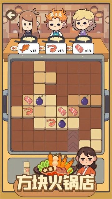 方块火锅店是一款消除+模拟经营游戏,在方块火锅店中,玩家将化身一位火锅店老板,在方块的世界里经营一家独具特色的火锅店,通过消除方块获取食材、升级店铺、吸引顾客,最终打造属于自己的火锅帝国。