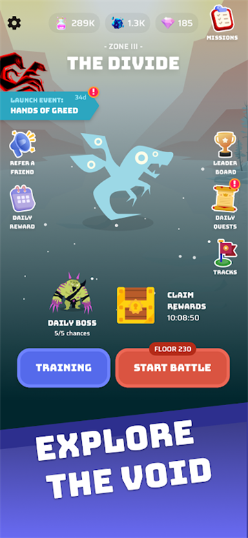 游戏以回合制策略战斗为核心,玩家将带领最多五只虚空宠物组成战队,挑战地下城中的各种怪物和BOSS。每只宠物拥有独特的属性、技能和定位。