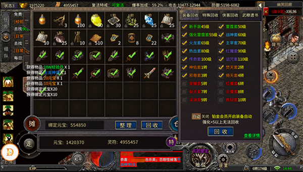 9、散人天堂,游戏内多种高爆地图,多种途径获得充值红包,装备爆率超高,万物皆可爆,回收还可获得钻石