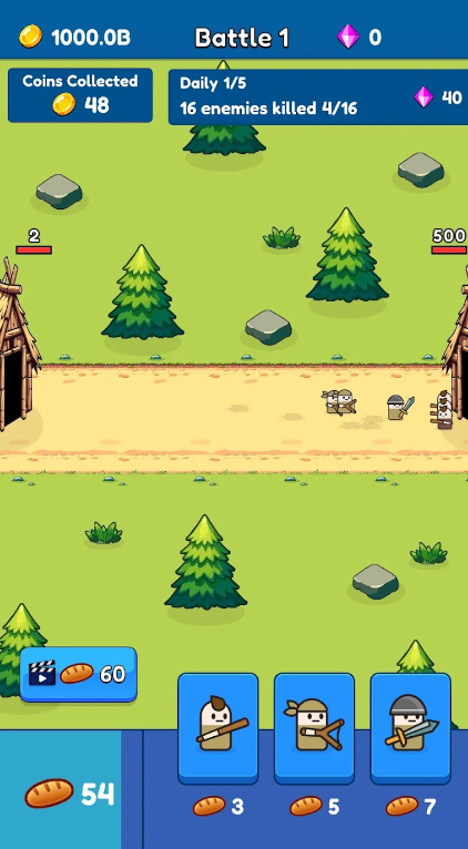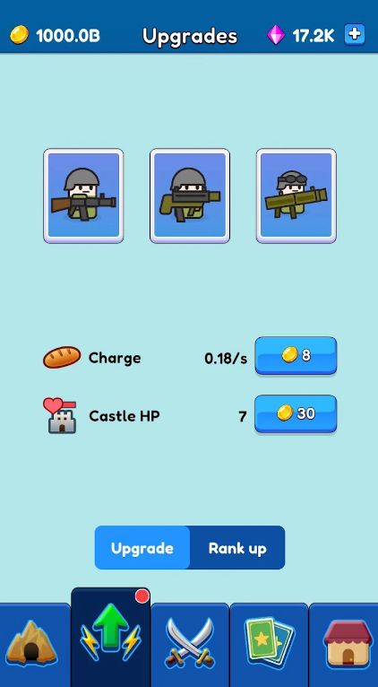 2.通过挂机获取资源,然后利用这些资源来升级你的士兵,构建你的防御工事,研究新的科技。
