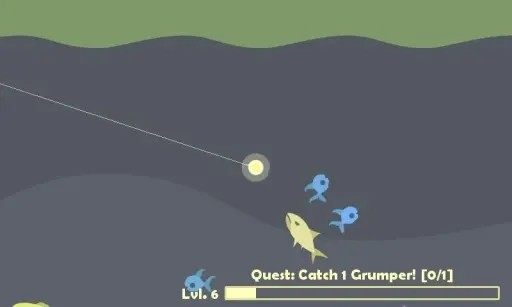 1、首先,玩家在本站下载并安装好游戏之后,打开进入,通过滑动手机屏幕,把鱼钩抛进水中钓鱼;(如果鱼钩没有抛进海里,那就多试几次)
