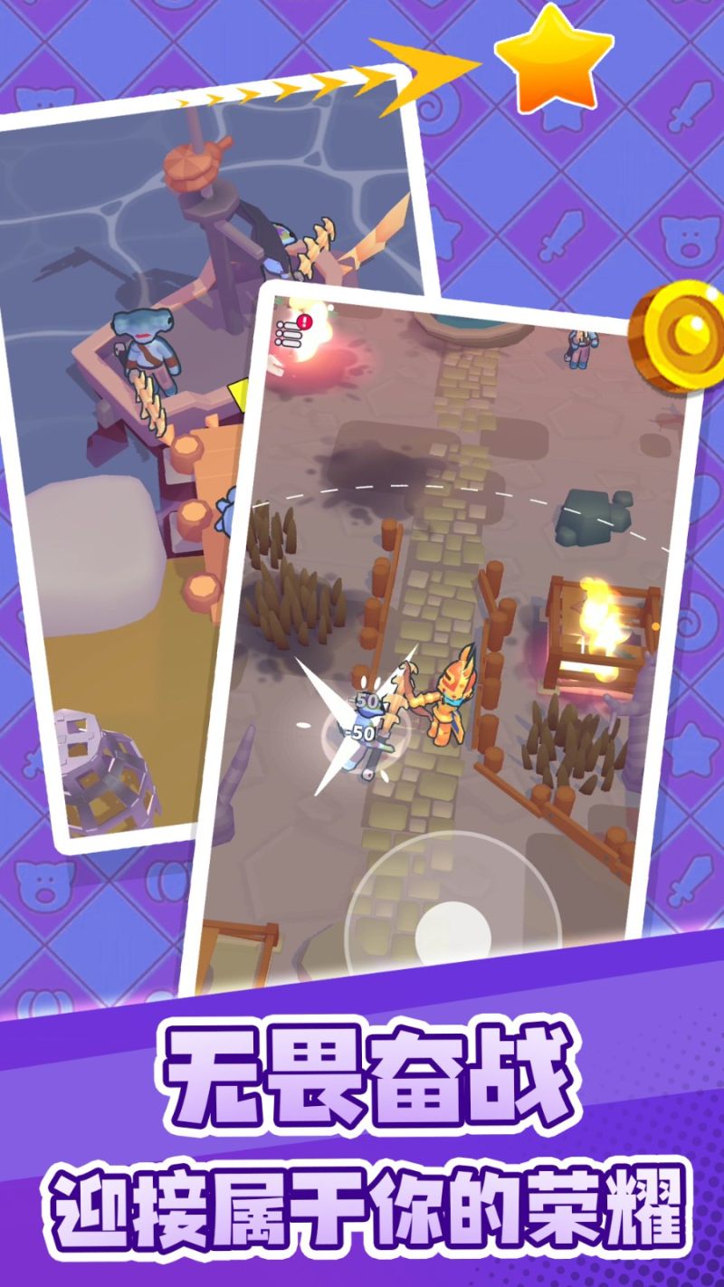 掌上英雄对决是一款卡通风格的冒险对战小游戏,在掌上英雄对决中,你将扮演一名勇者,踏上一段同行般的冒险之旅,探索这个无比广阔的神奇世界,每个地点都有各种资源可以采集,可以建造各种装备武器,用来对抗入侵的敌人