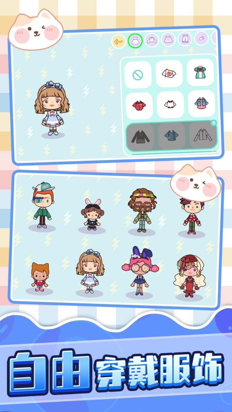 3.与游戏中的角色进行深入互动,包括更换他们的衣服、化妆、戴帽子,甚至可以让他们拿着不同的物品。