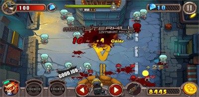 1、横扫僵尸开始时的绿头小僵尸是很脆的,一枪爆头,拿起你的武器将它们打成肉酱吧,游戏得高分的一个关键就是你的连续击杀combo数了,不到危急时刻,就用你的机枪一直扫吧,爆炸效果最后再用游戏越到后面僵尸就越难打了,这就需要你切换武器了