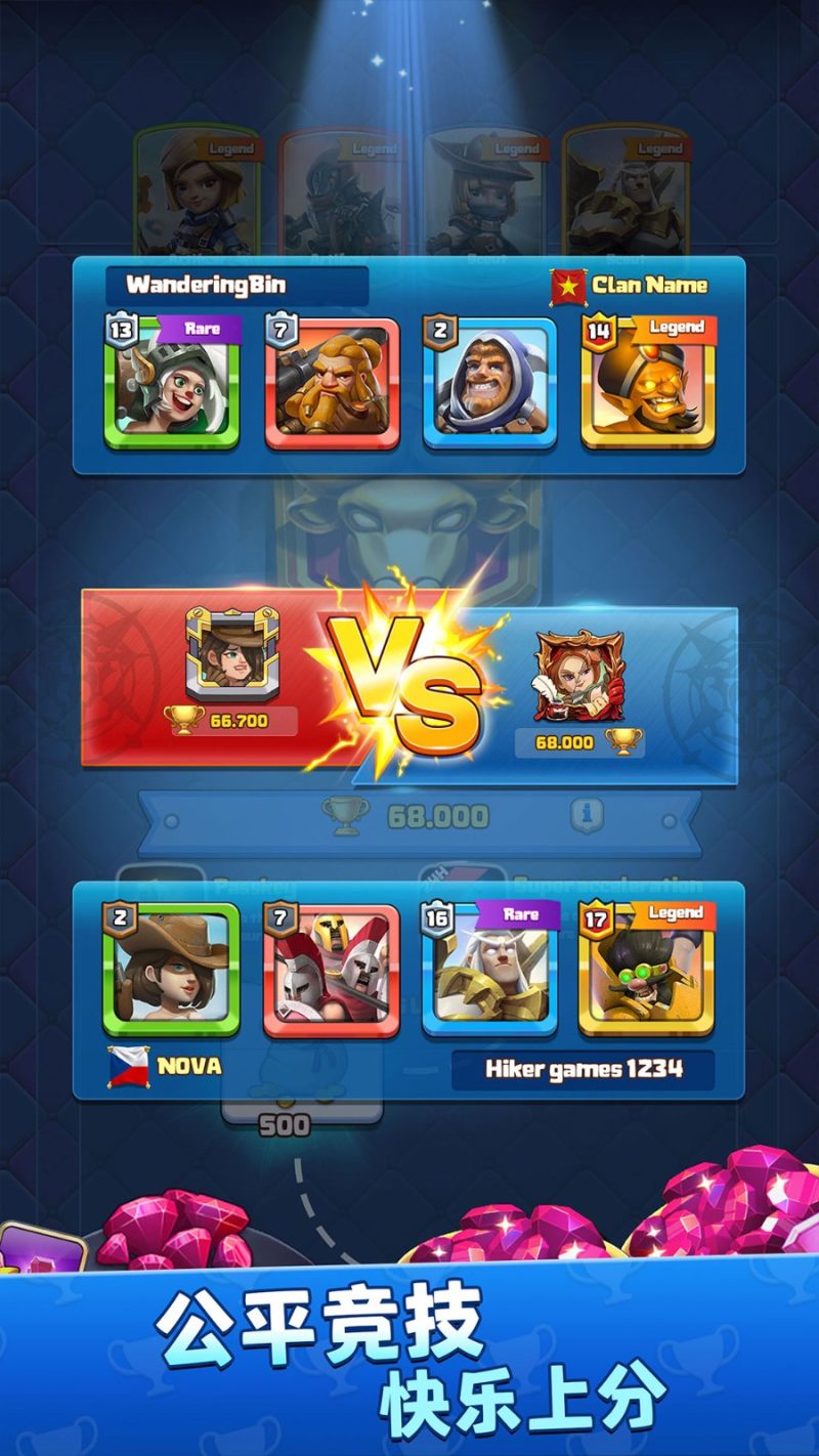 3.游戏提供了丰富的游戏模式,包括镜像挑战、神秘英雄挑战、选卡挑战、速战速决、领主挑战、锦标赛、疯狂角斗场和周赛等。