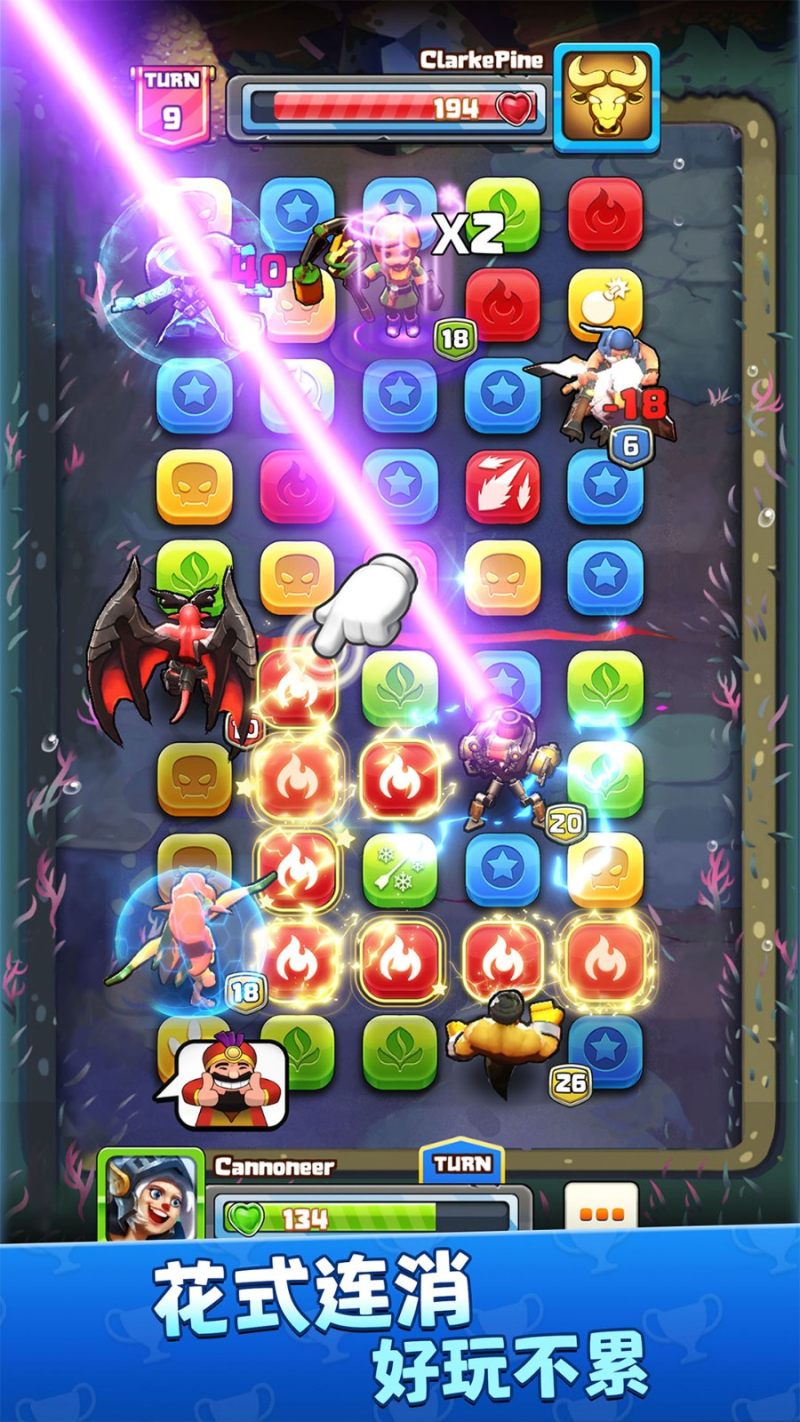 2.通过巧妙的连消技巧,玩家甚至能将对方的英雄转化为自己的战斗力量