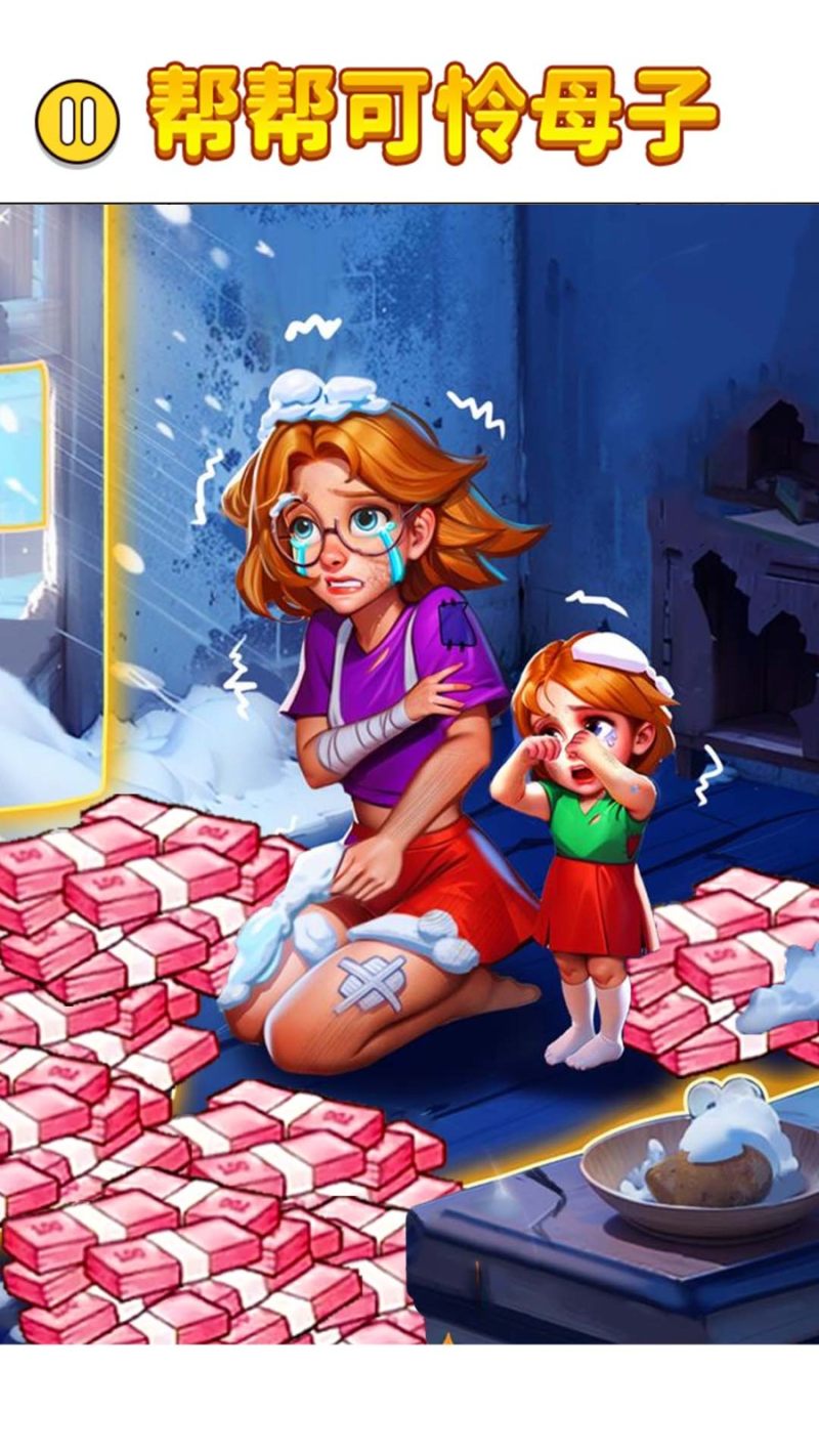 帮帮可怜母子是一款益智闯关小游戏,在帮帮可怜母子中,每一次关卡都是天崩开局,玩家需要帮助小姐姐解决所处的困境,让这对可怜的母子逆风翻盘过上好日子,有海量钞票可以使用,只有帮到点子上才能成功通关哦