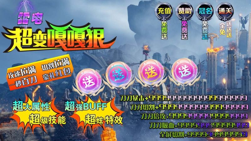 雷电超变嘎嘎狠是一款195版本的无限刀传奇游戏。在雷电超变嘎嘎狠中,玩家将体验到一个充满挑战和机遇的复古世界,同时享受到前所未有的福利待遇,爆砍BOSS享受激爽时刻,在各种副本中爆砍,一键捡拾所有战利品!