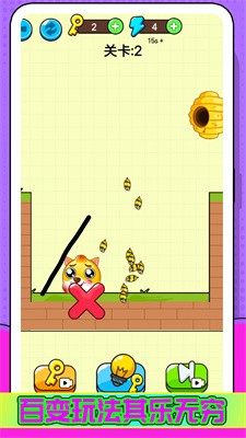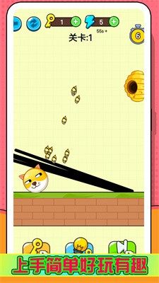 1.在屏幕上画线,为狗狗们构建一个安全的区域,阻止蜜蜂接近狗狗,等待时间结束即可完成关卡挑战。