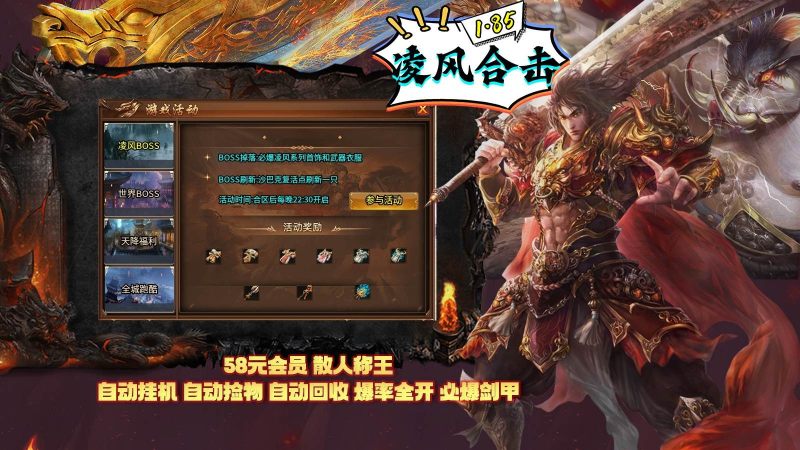 3.全新合击版本还原激情,散人无敌等级免费,爆率永久不变