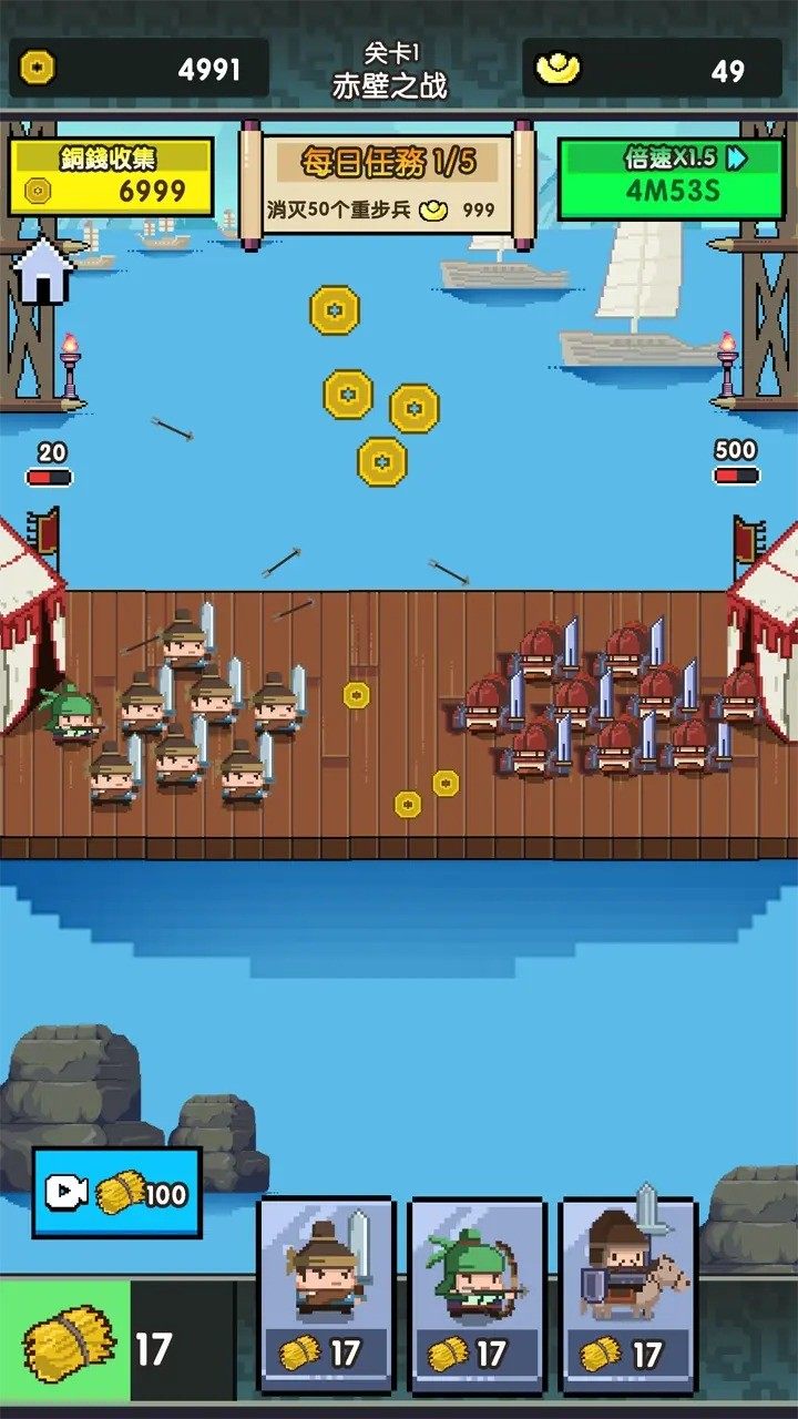 三国无限战败模拟器是一款像素风三国策略手游,在三国无限战败模拟器中,有50位三国名将可供玩家招募收集,玩家可以通过武将属性的强化以及升级来提高战斗力,通过一次次战败获取更多经验,对战中出兵的时机很重要