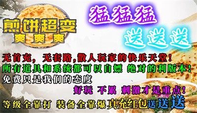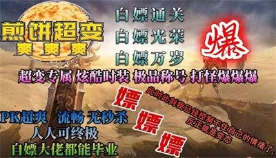 煎饼超变爽爽爽是一款1.95无限刀传奇手游,超多福利免费领取,各种副本自由选择,一键挂机巡航,获取超多资源奖励。在煎饼超变爽爽爽中,各种玩法应有尽有,还原经典,让你享受最纯正的传奇体验。