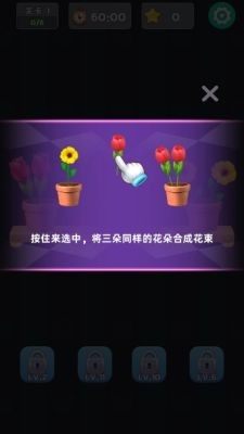 3.通过合成不同的花朵来闯关,达到特定的合成目标和限制条件,开动脑筋,找出正确的合成路径。