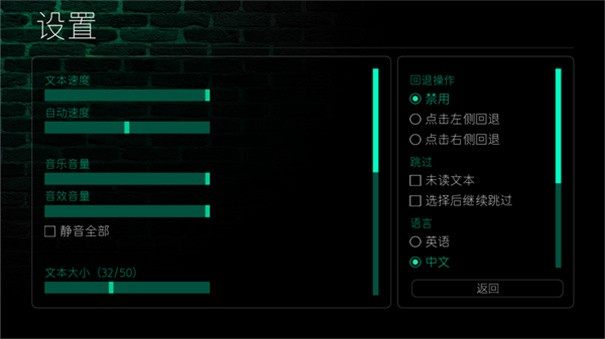 在设置界面还可以对文本速度、音量大小等选项进行自定义设置。