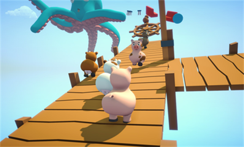 3、采用3D卡通画风,画面充满童趣,角色采用小动物形象,游戏氛围轻松愉悦。