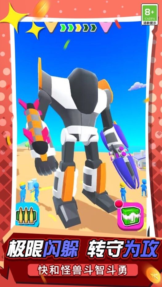 3.拥有各种刺激有趣的挑战,可以释放不同机器人的潜能,更好的打败更多怪物。