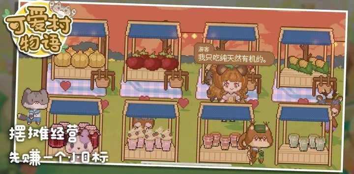 可爱村物语是一款像素风的休闲经营小游戏,在可爱村物语中,玩家将成为可爱村的村长,和可爱的小动物们一起生活并且经营好村庄,在这里你可以种种地、建建房子,还能自由装饰这些房子甚至是整个村庄,这里有很多可爱的小动物等你收集,更有超多温馨的故事等你解锁。