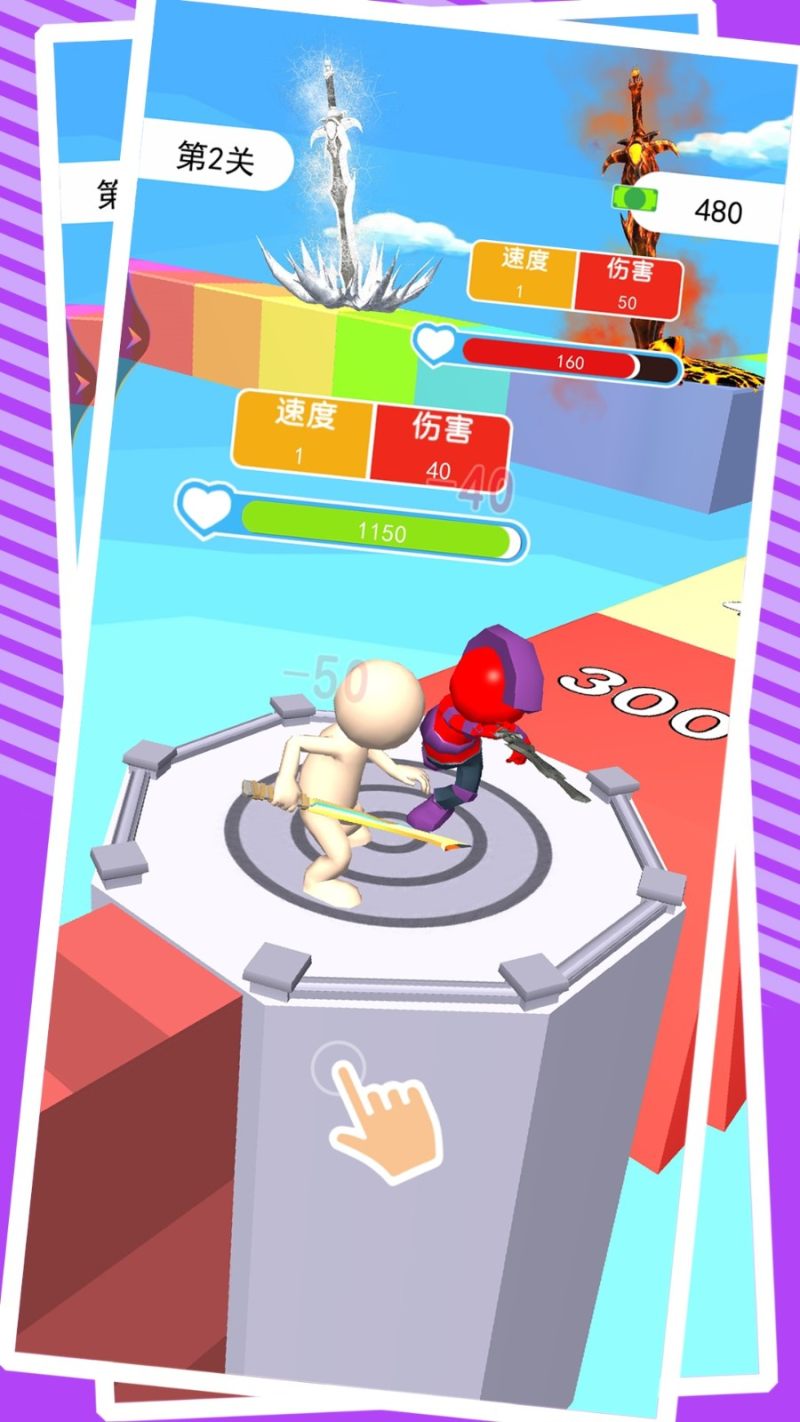 1.熟悉的竖屏闯关玩法,这里还有更多的宝剑可以选择,这种玩法在你玩的时候也有不一样的体验感;