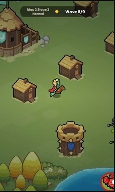 1.在本站下载安装并运行夜幕王国边境塔防,左下角的虚拟摇杆可以控制角色进行移动